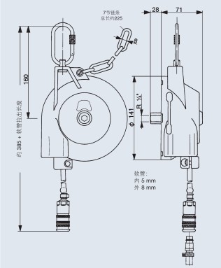 德國卡爾施達(dá)CarlStahl Kromer 7223型空氣軟管彈簧平衡器可為氣動工具輸送所需的壓縮空氣。800毫米的工作行程在人體工程