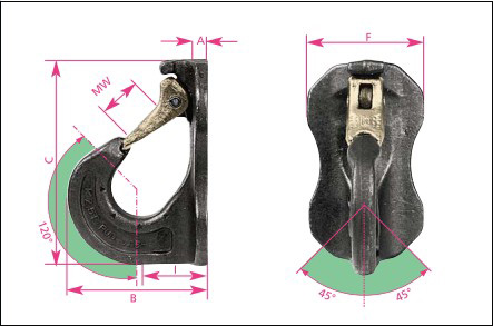 螺栓型吊鉤一般在吊架或分布梁上作為吊裝點(diǎn)使用,與鋼絲繩索具、環(huán)形吊帶及其它橢圓形的吊環(huán)或吊孔連接。