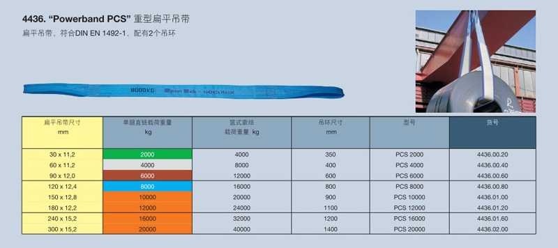 德國史班特Spanset “Powerband PCS” 重型扁平吊帶4436,符合DIN EN 1492-1,配有2個吊環(huán)。