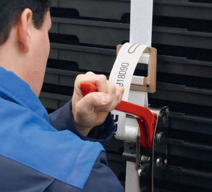 當(dāng)今,很多工業(yè)品都要靠鐵路進(jìn)行運(yùn)輸。Easy Lashtex是根據(jù)德國(guó)鐵路標(biāo)準(zhǔn)BN 918090的嚴(yán)格要求進(jìn)行開(kāi)發(fā)設(shè)計(jì)的。其中最為重要的標(biāo)準(zhǔn)是:只有編織或符合綁扎帶(絲織結(jié)構(gòu))才能用于負(fù)載約束。負(fù)載安全綁扎帶適用溫度必須在-25°C (-13°F) 到 +70°C (+158°F)之間。對(duì)于預(yù)設(shè)的帶扣組合的系統(tǒng)強(qiáng)度而言,當(dāng)載荷達(dá)到其50%時(shí),綁扎帶最大伸長(zhǎng)率不能超過(guò)7%。根據(jù)裝載規(guī)定,所有綁扎帶必須具有500 daN的最小系統(tǒng)強(qiáng)度。標(biāo)記要求: 綁扎帶必須具有耐久性圖案,顯示生產(chǎn)商、批號(hào)和系統(tǒng)強(qiáng)度。在100次高達(dá)50%的斷裂載荷的循環(huán)應(yīng)力測(cè)試之后,帶子在連接件上滑動(dòng)不能超過(guò)20 mm。Easy Lashtex提供廣泛范圍的不同帶扣和張緊器的組合。亦可提供手動(dòng)帶盤車及扁針(pallet needles)。