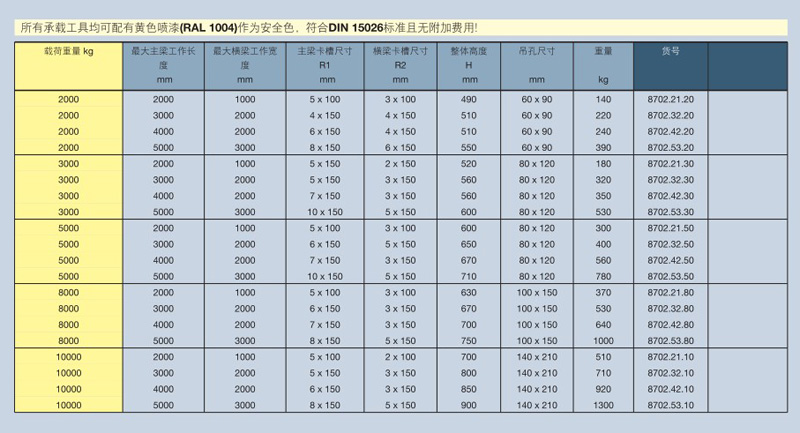 類型 8702. H型承載橫梁 配有可調(diào)整位置的吊鉤