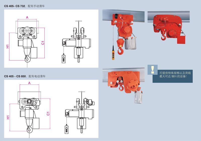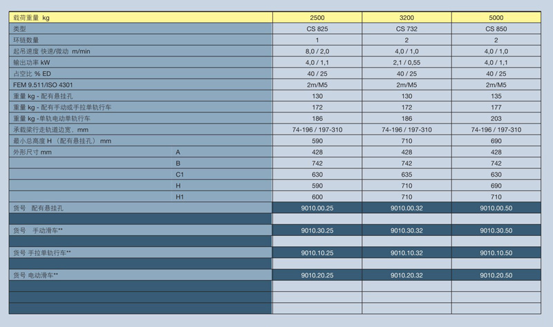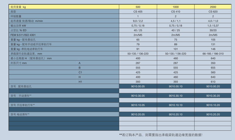 進(jìn)口電動(dòng)葫蘆 9010. 緊湊的結(jié)構(gòu)使其體積小、凈空高度低。 電動(dòng)葫蘆斜齒齒輪傳動(dòng)機(jī)構(gòu)為高承載能力及低噪聲提供了保障。所有齒輪都做了滲碳硬化及精細(xì)加工處理。最低磨損狀態(tài)下,剎車(chē)片反應(yīng)迅速,保證安全性。全封閉結(jié)構(gòu)以及特殊密封處理使其更適應(yīng)灰塵以及惡劣天氣的工作環(huán)境。該低磨損承載鏈條表面經(jīng)過(guò)硬化及鍍鋅處理,符合DIN EN 818標(biāo)準(zhǔn)。電源: 三相交流電 380/400 V 50 Hz ( 根據(jù)要求可以提供其它電壓型號(hào)),防護(hù)種類(lèi) IP 55, 絕緣等級(jí) F, 動(dòng)力傳動(dòng)器 1, 2 m/M5標(biāo)準(zhǔn)提升高度為3 m
