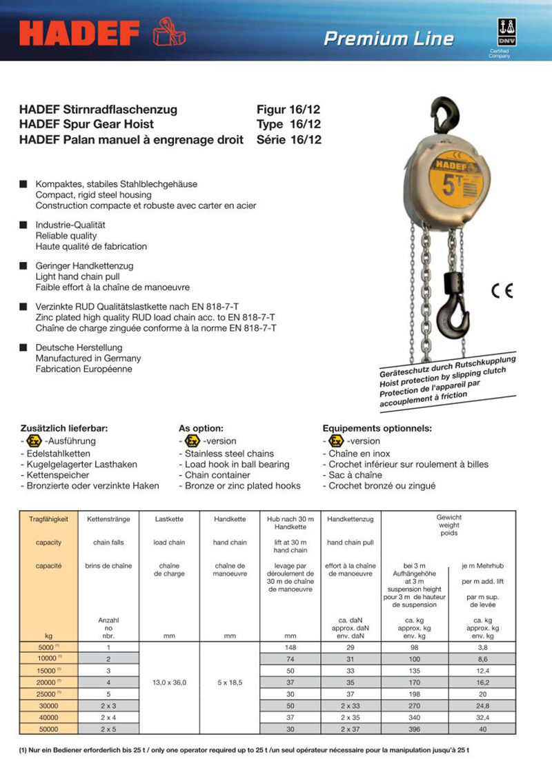 手拉葫蘆進(jìn)口手動葫蘆16/12型 德國Hadef哈德夫原裝進(jìn)口