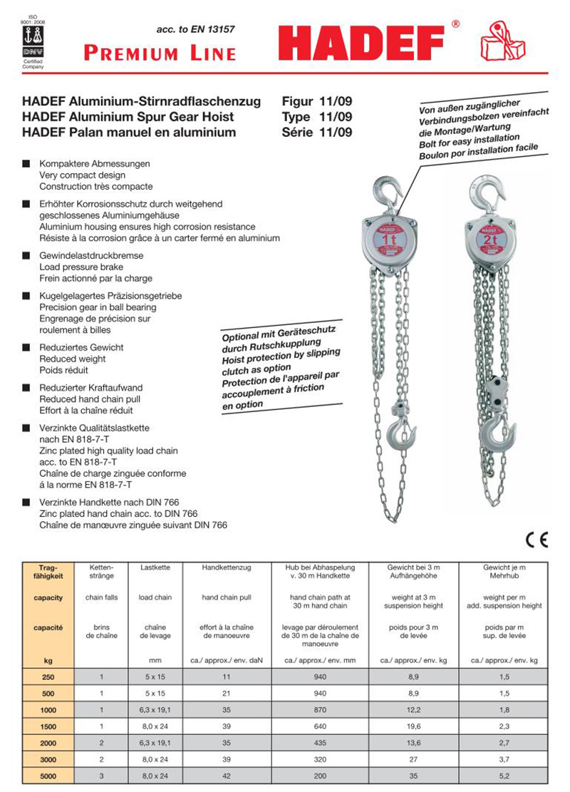 原裝進(jìn)口11/09型手拉葫蘆 德國(guó)Hadef哈德夫