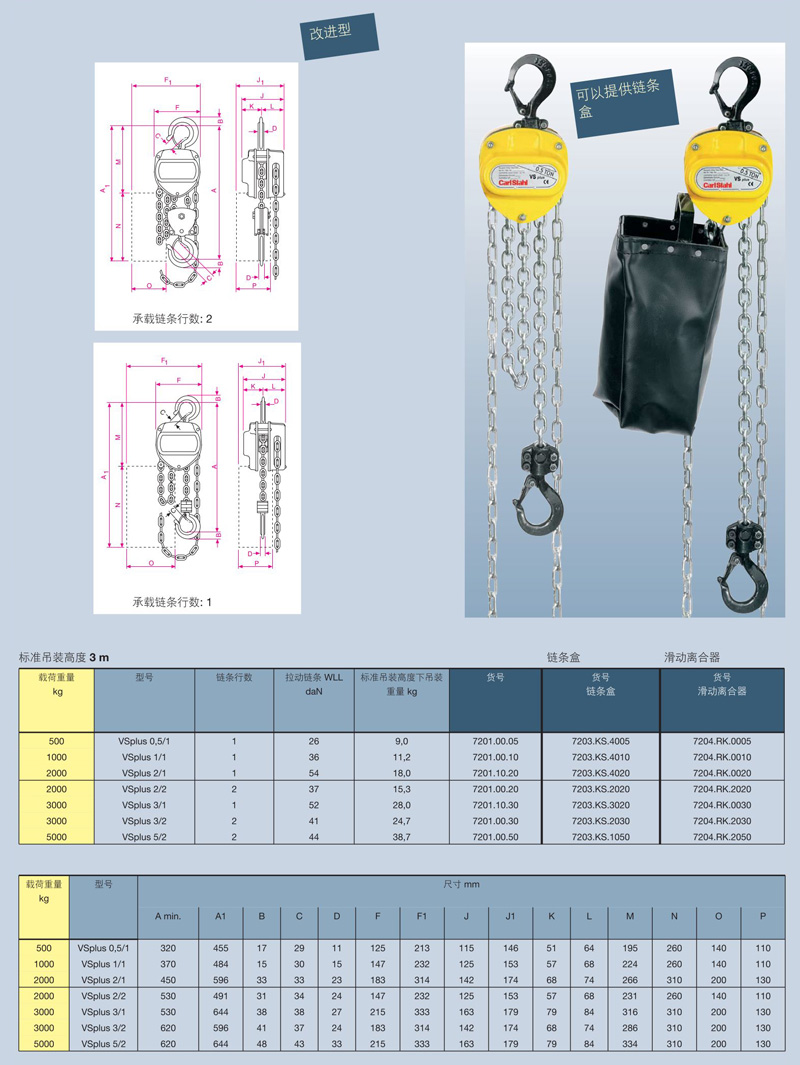 進口手拉葫蘆7201. VS 型圓柱齒輪鏈滑車具有下列優(yōu)勢: