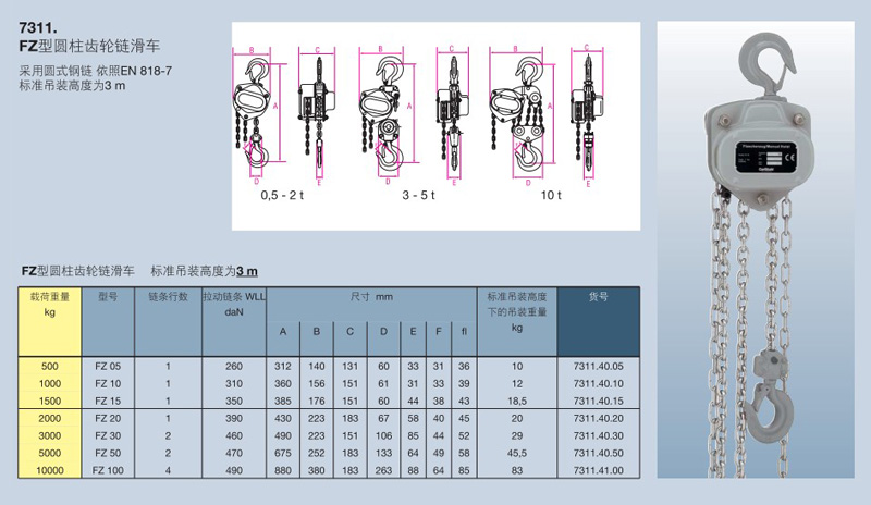 進(jìn)口手拉葫蘆 7311.FZ型圓柱齒輪鏈滑車(chē)