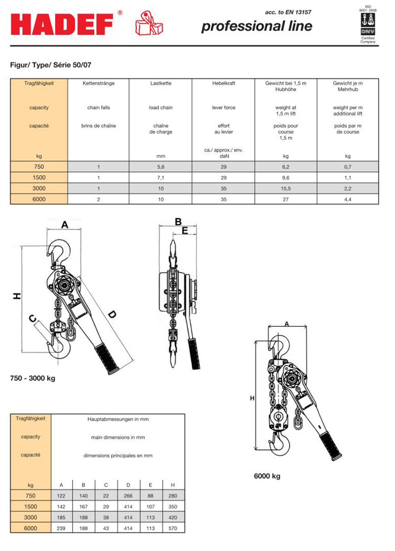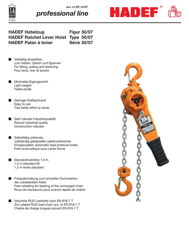 Hadef手扳葫蘆 德國哈德夫50/07手扳葫蘆