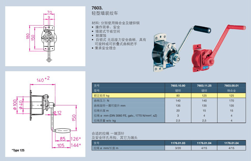 墻裝式手搖絞盤(pán) 7603 德國(guó)CarlStahl手動(dòng)絞盤(pán)