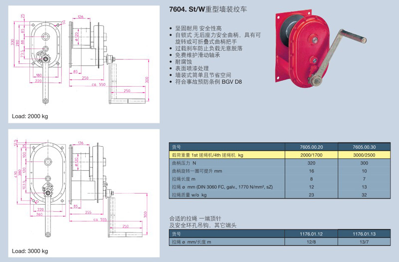 墻裝式手搖絞盤 7604.220 德國(guó)CarlStahl手動(dòng)絞盤