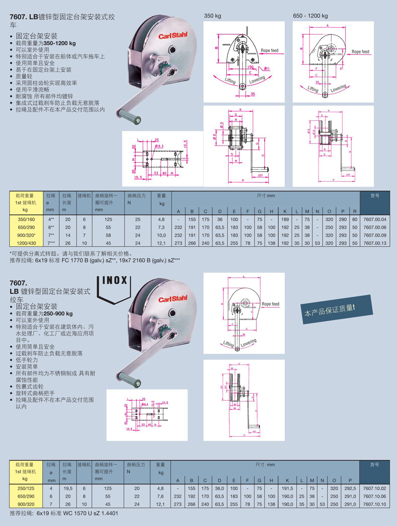 7607. LB鍍鋅型固定臺架安裝式絞車