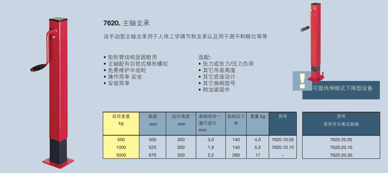 該手動(dòng)型主軸支承用于人體工學(xué)調(diào)節(jié)和支承以及用于測(cè)平和移位等等