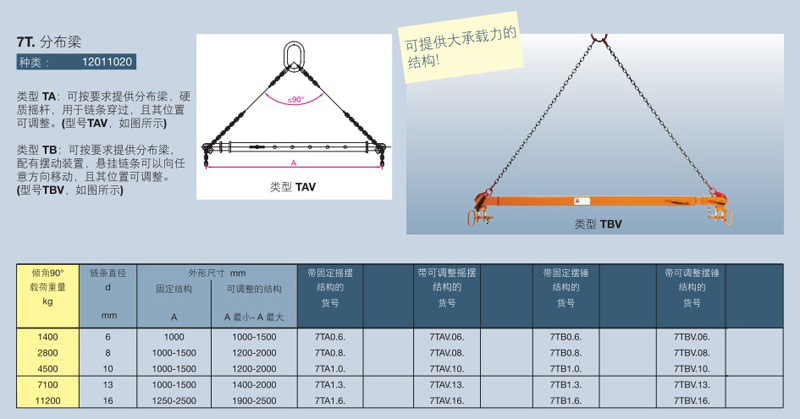 類型 TA:可按要求提供分布梁,硬質搖桿,用于鏈條穿過,且其位置可調整。(型號TAV,如圖所示)