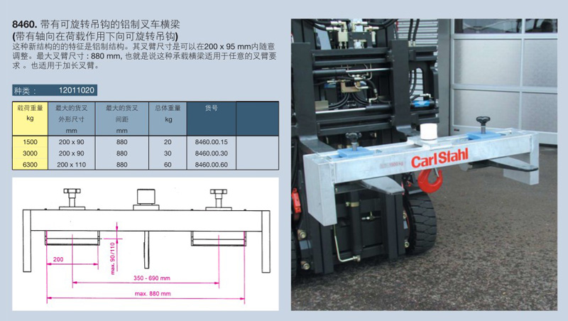 8460. 帶有可旋轉(zhuǎn)吊鉤的鋁制叉車(chē)橫梁