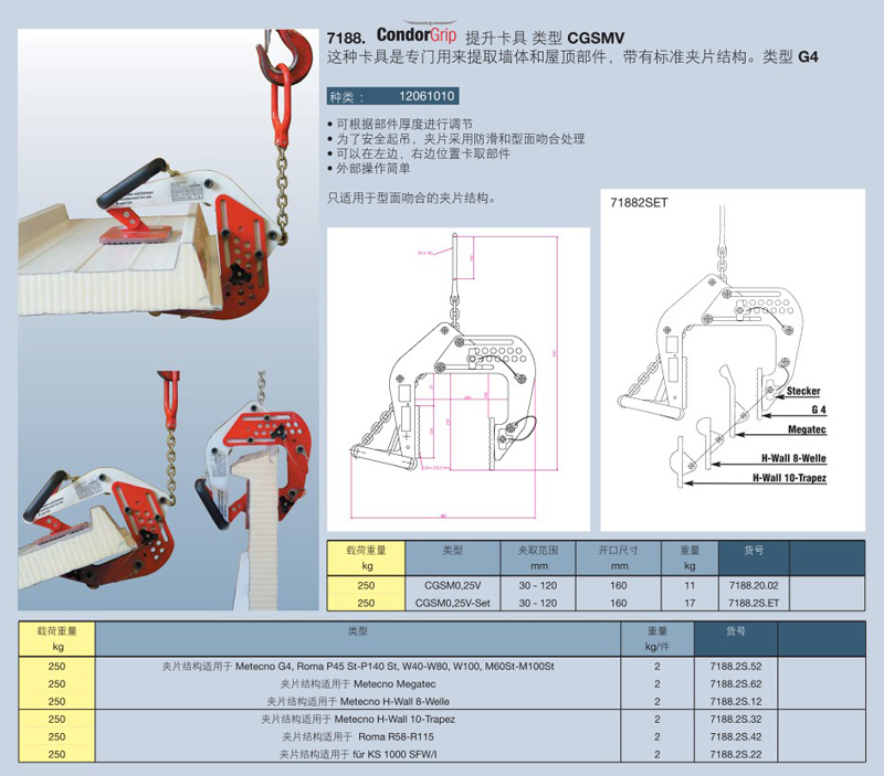 這種卡具是專門用來提取墻體和屋頂部件,帶有標(biāo)準(zhǔn)夾片結(jié)構(gòu)。類型 G4