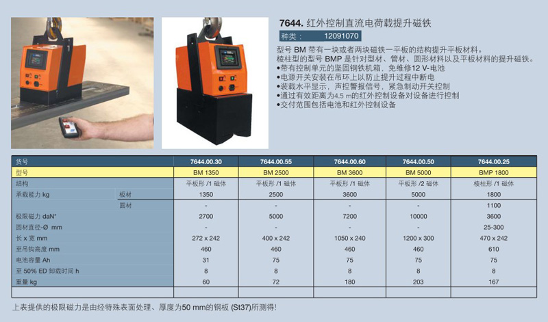 型號 BM 帶有一塊或者兩塊磁鐵一平板的結(jié)構(gòu)提升平板材料。棱柱型的型號 BMP 是針對型材、管材、圓形材料以及平板材料的提升磁鐵。
