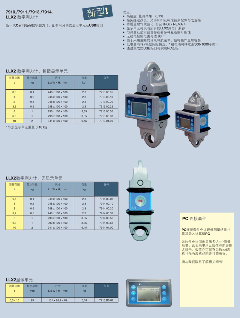 新一代Carl Stahl數(shù)字測力計,配有可分離式顯示單元及USB接口