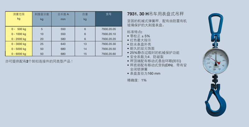 堅固的機械式彈簧秤,配有由防震有機玻璃保護的大刻度表盤。