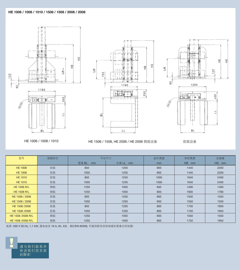 型號 HE 1006 / 1008 / 1010 / 1506 / 1508 / 2006 / 2008,電動液壓