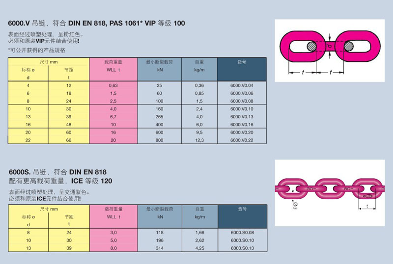 6000.V 吊鏈,符合 DIN EN 818, PAS 1061* VIP 等級 100