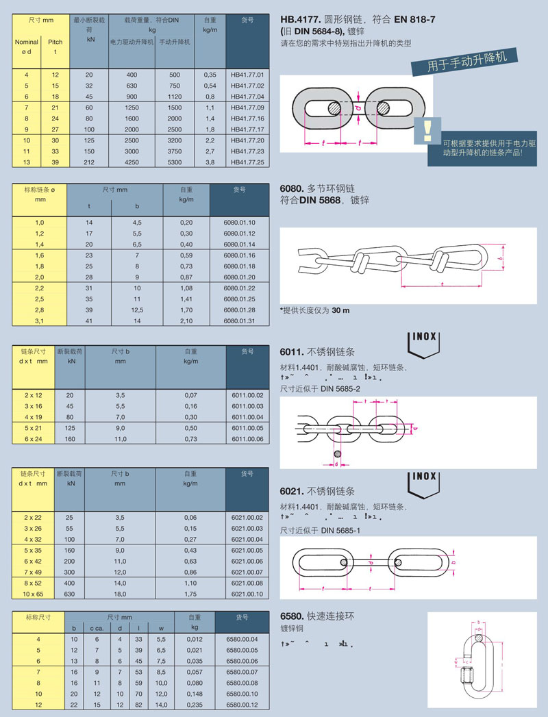 6000S. 吊鏈,符合 DIN EN 818
