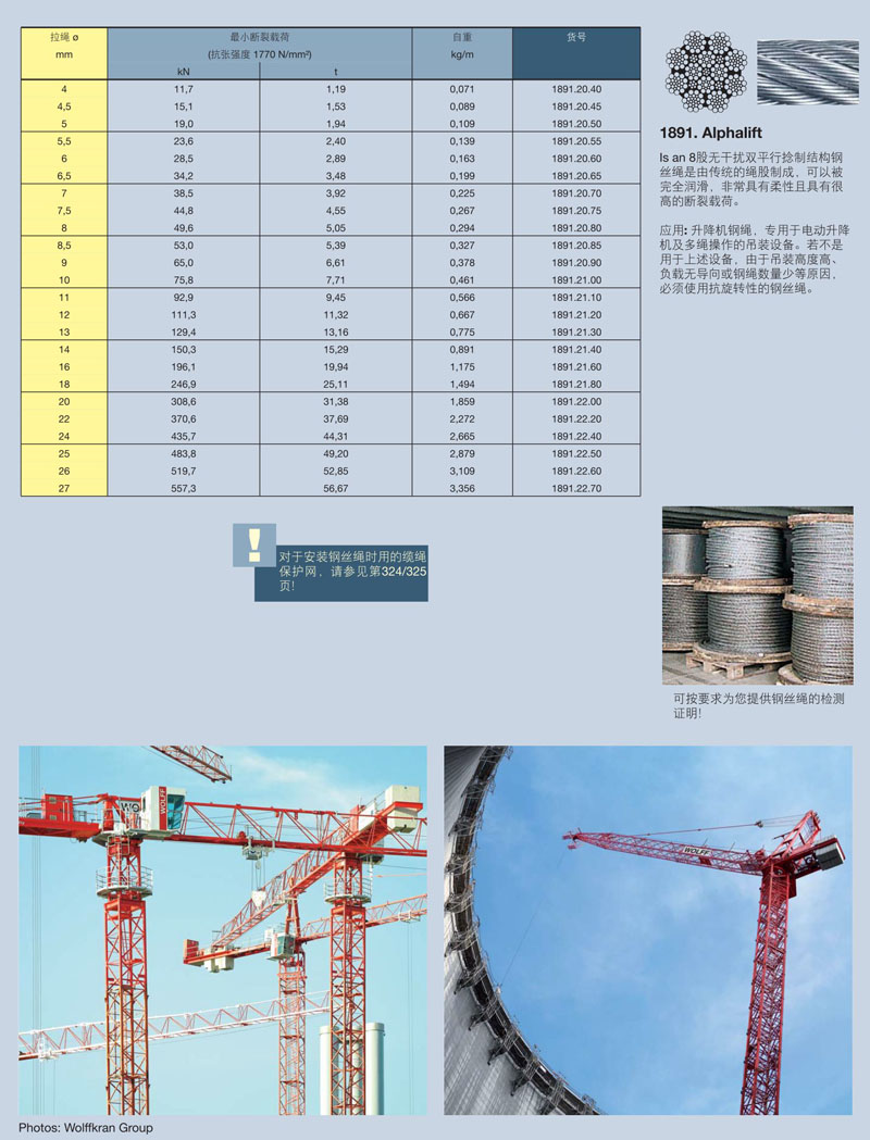 應(yīng)用: 升降機(jī)鋼繩,專用于電動(dòng)升降機(jī)及多繩操作的吊裝設(shè)備。若不是用于上述設(shè)備,由于吊裝高度高、負(fù)載無導(dǎo)向或鋼繩數(shù)量少等原因,必須使用抗旋轉(zhuǎn)性的鋼絲繩。