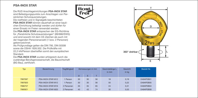 德國RUD螺栓型吊環(huán) PSA-INOX STAR