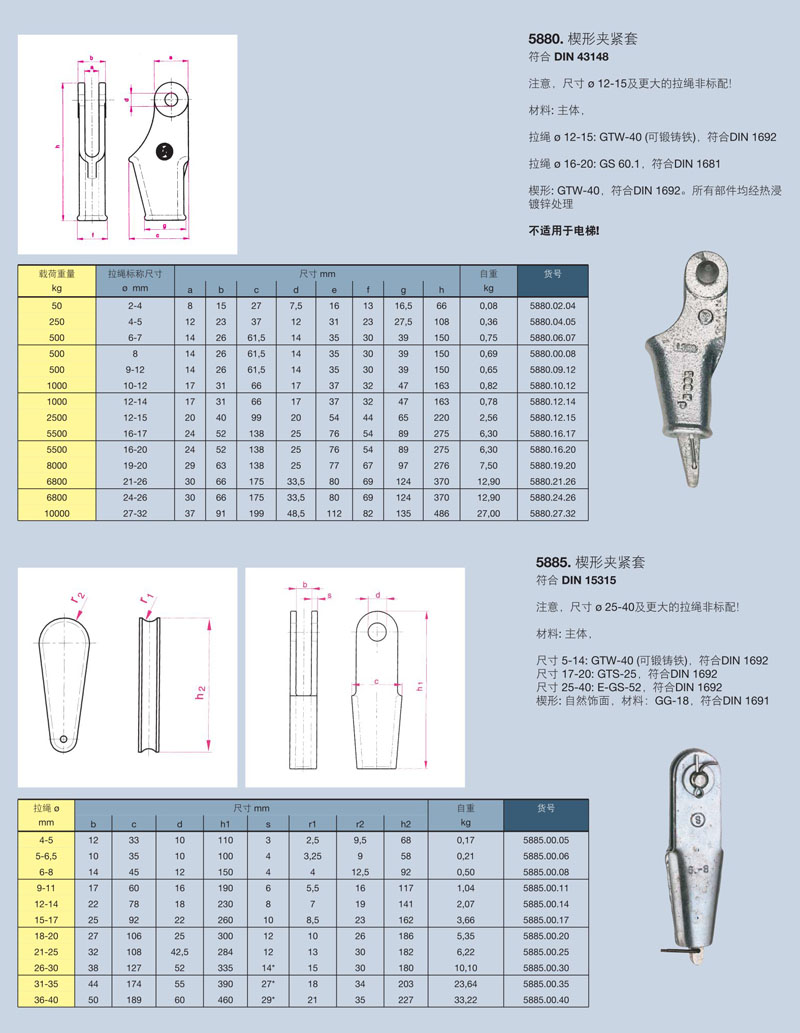 楔形: GTW-40,符合DIN 1692。所有部件均經(jīng)熱浸鍍鋅處理