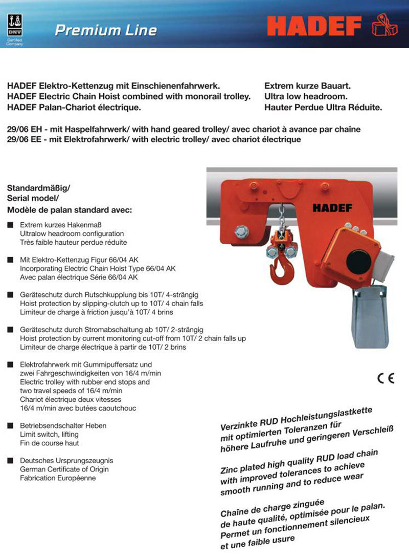Hadef哈德夫電動(dòng)葫蘆 29/06EH 29/06EE 鏈?zhǔn)狡鹬睾J