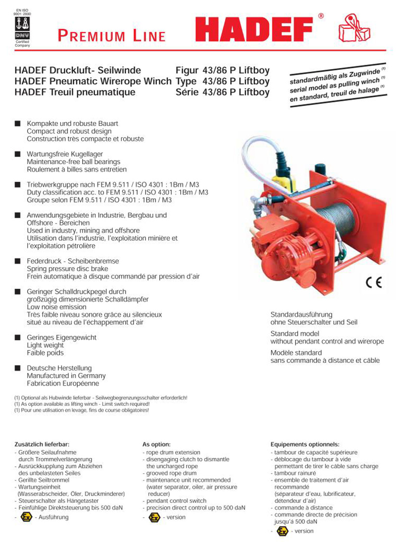 Hadef進口氣動卷揚機 43/86P 德國原裝哈德夫
