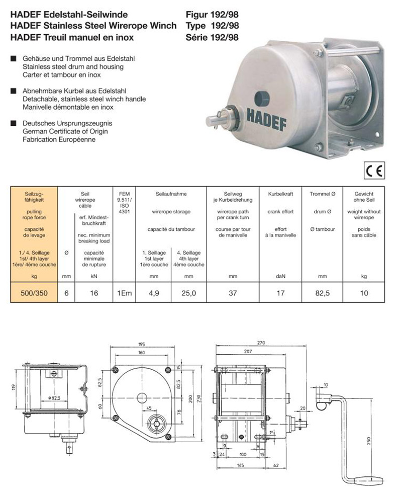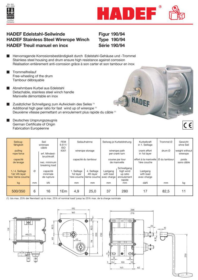 墻裝式手搖絞盤 190/94 192/98 德國Hadef手動絞盤