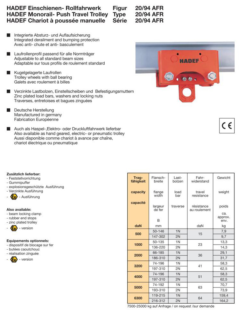 進口Hadef 20/94AFE AFH AFP型滑車 德國哈德夫