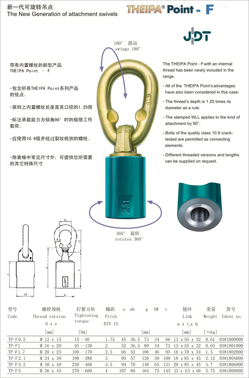 德國JDT吊環(huán)TP-F內(nèi)置螺紋款式